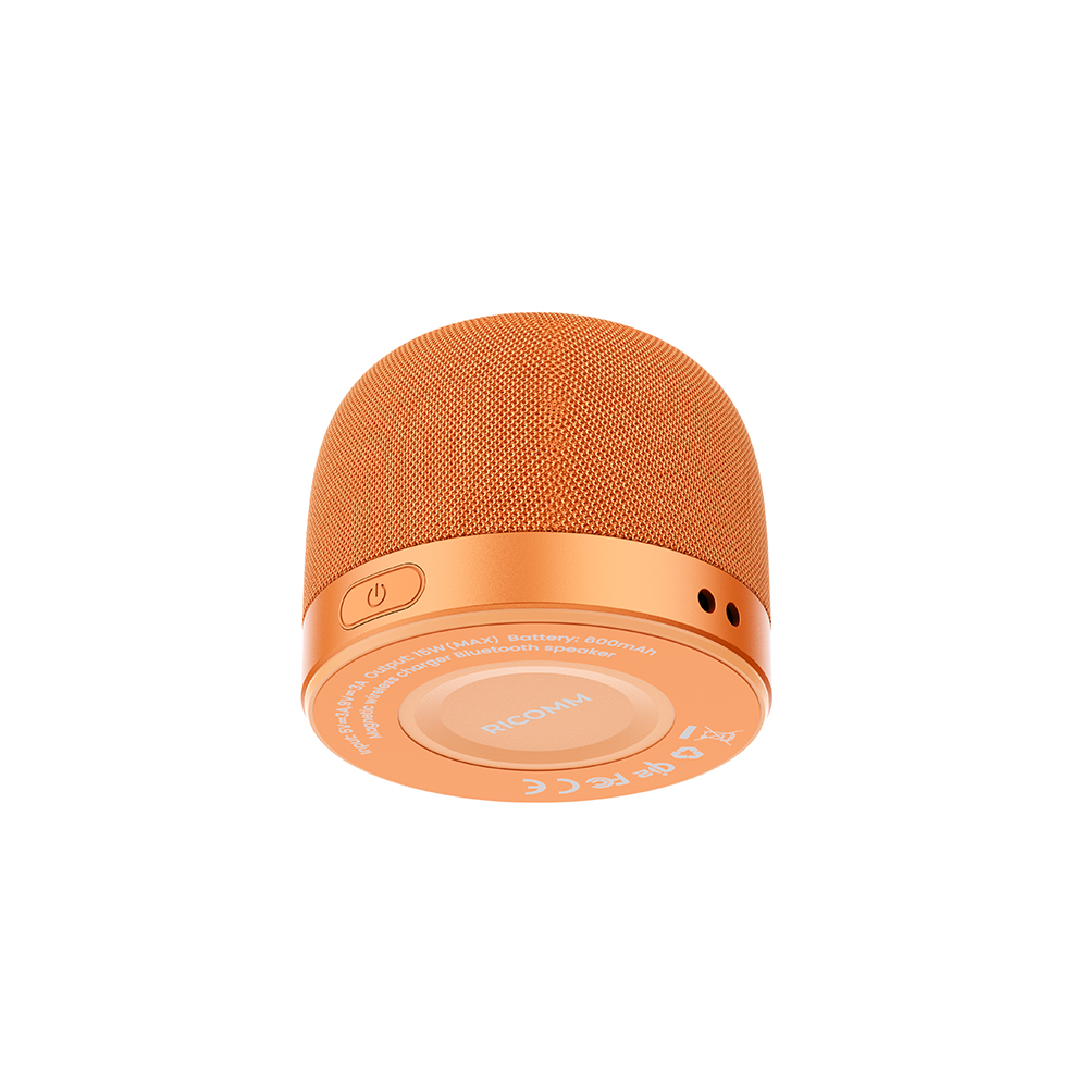 Ricomm currently launches an innovative wireless charger with Bluetooth speaker in model RQM015A, which not only has Bluetooth music playback and magnetic phone holder functions, but also adds wireless charging technology, when consumers use a type-c cable to connect to the Bluetooth speaker, they can achieve a maximum of 15W wireless charging for the mobile phone.