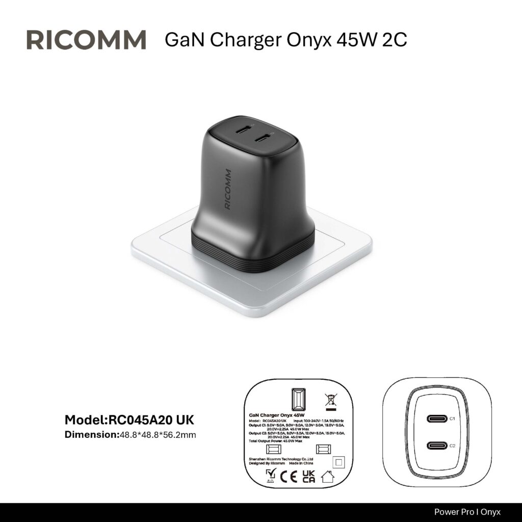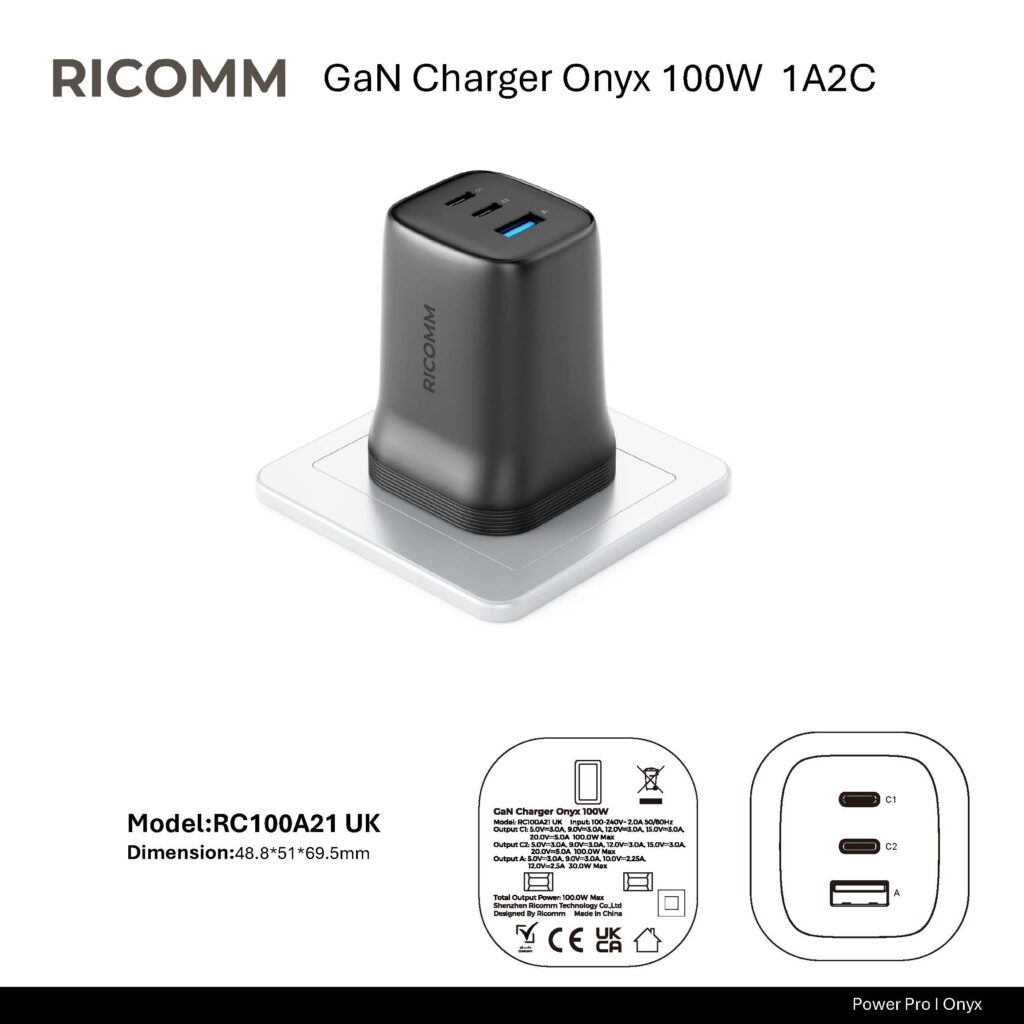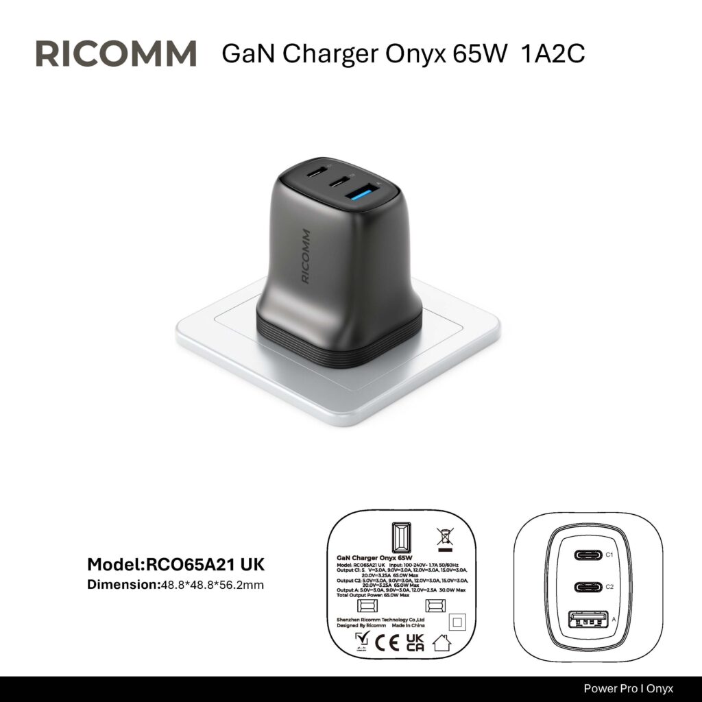 RICOMM’s onyx series chargers on the market not only use the latest GaN technology, but also have the following advantages