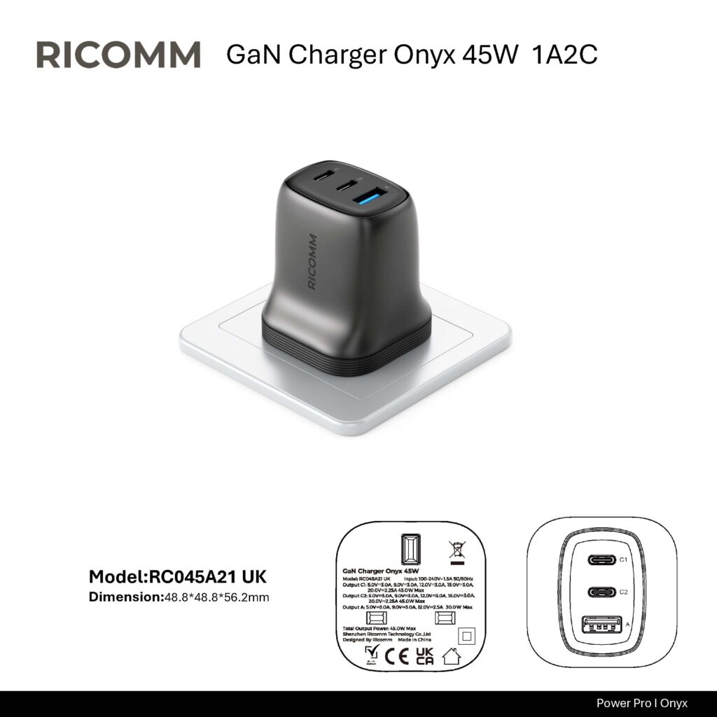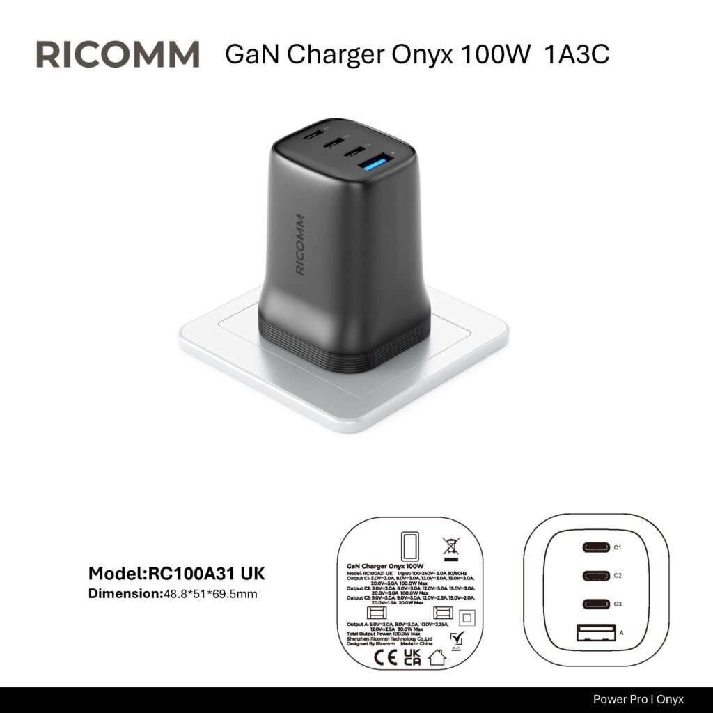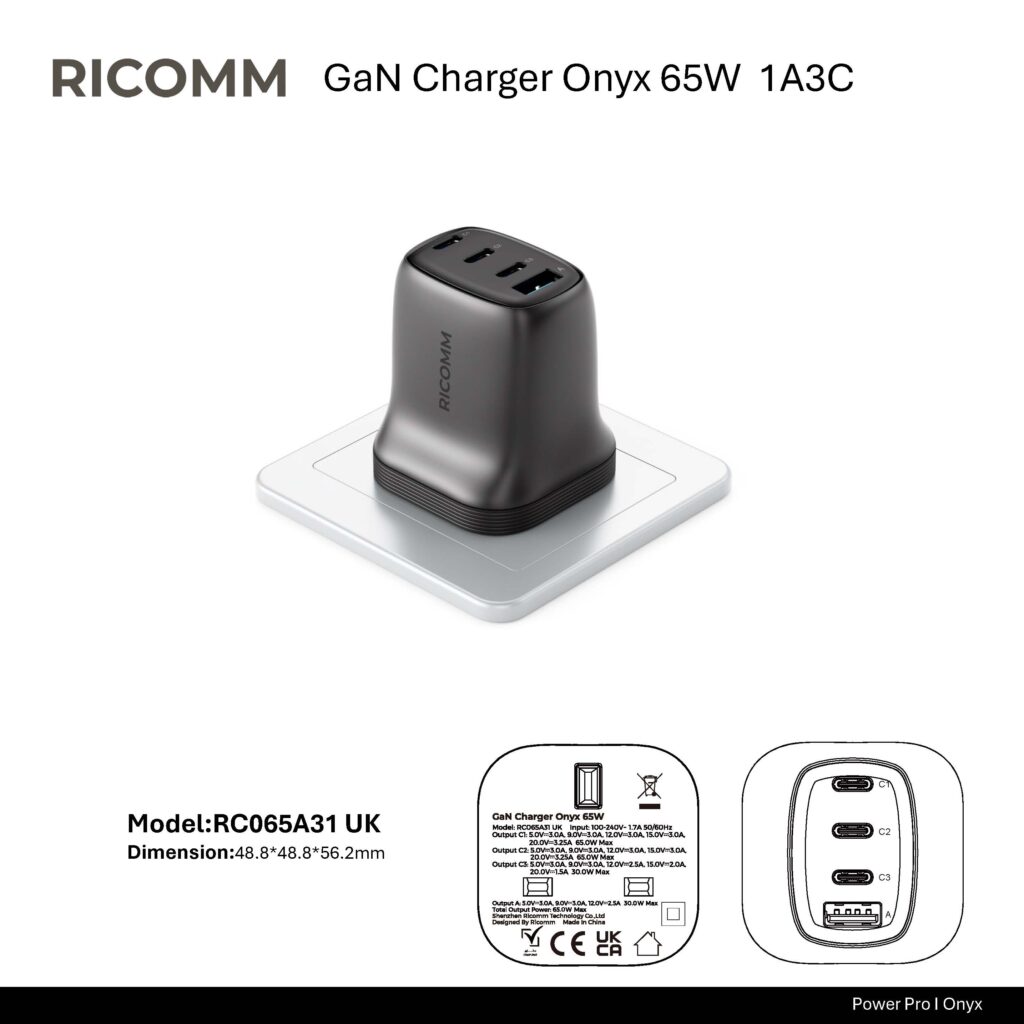 RICOMM’s onyx series chargers on the market not only use the latest GaN technology, but also have the following advantages